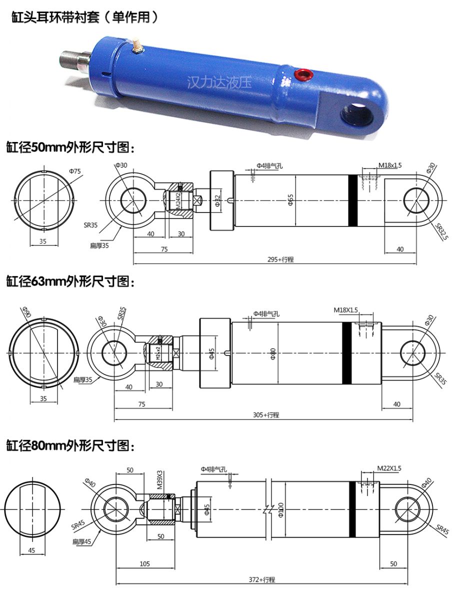單作用油缸(缸頭耳環帶襯套)