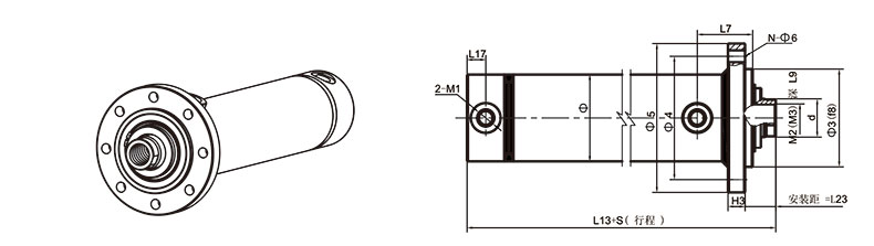 活塞桿端為內(nèi)螺紋桿頭耳環(huán)連接