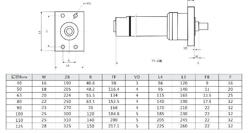 頭部長方法蘭外形安裝尺寸圖