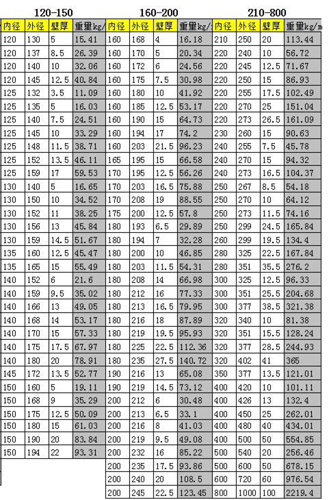 單位:重量(kg),壁厚、外徑(mm),長度(m)
